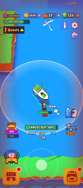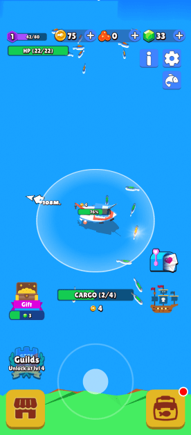 There are also daily and weekly quest to complete to get currency that you can use in the guild shop. At the shop you can get upgrades for your boat. These upgrades include bonus Exp or attack, speed, health or cargo.