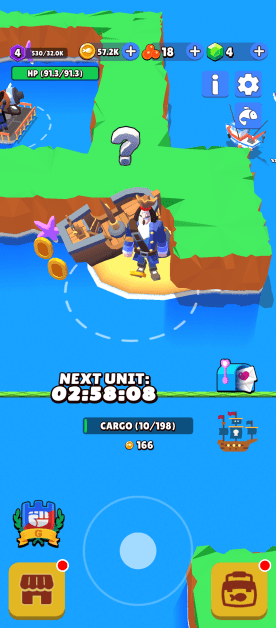 Some of the buildings you can use are farms these gather resources for you over time. You also can use the black market to power up your boat. When you unlock all the available upgrades your boat will change appearance and get stronger. There are also exchange buildings you can use to help get the resource you need.